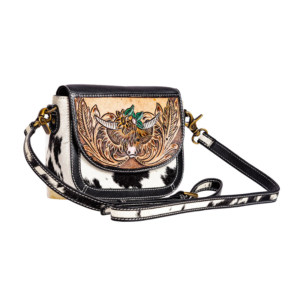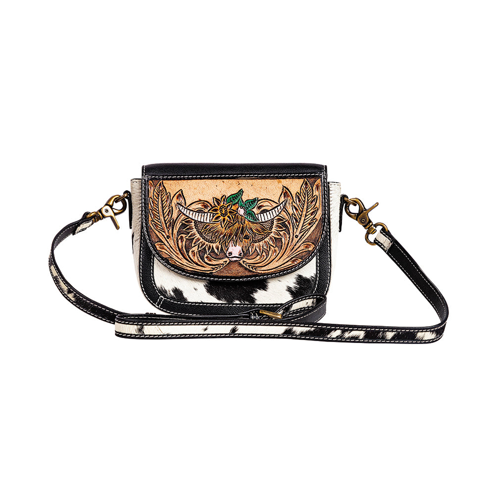 Bloomin' Steer Small Hand-tooled Bag by Myra Bag delivers a cheerful style statement that blends artisan craftsmanship with versatile practicality, ideal for everyday carry.