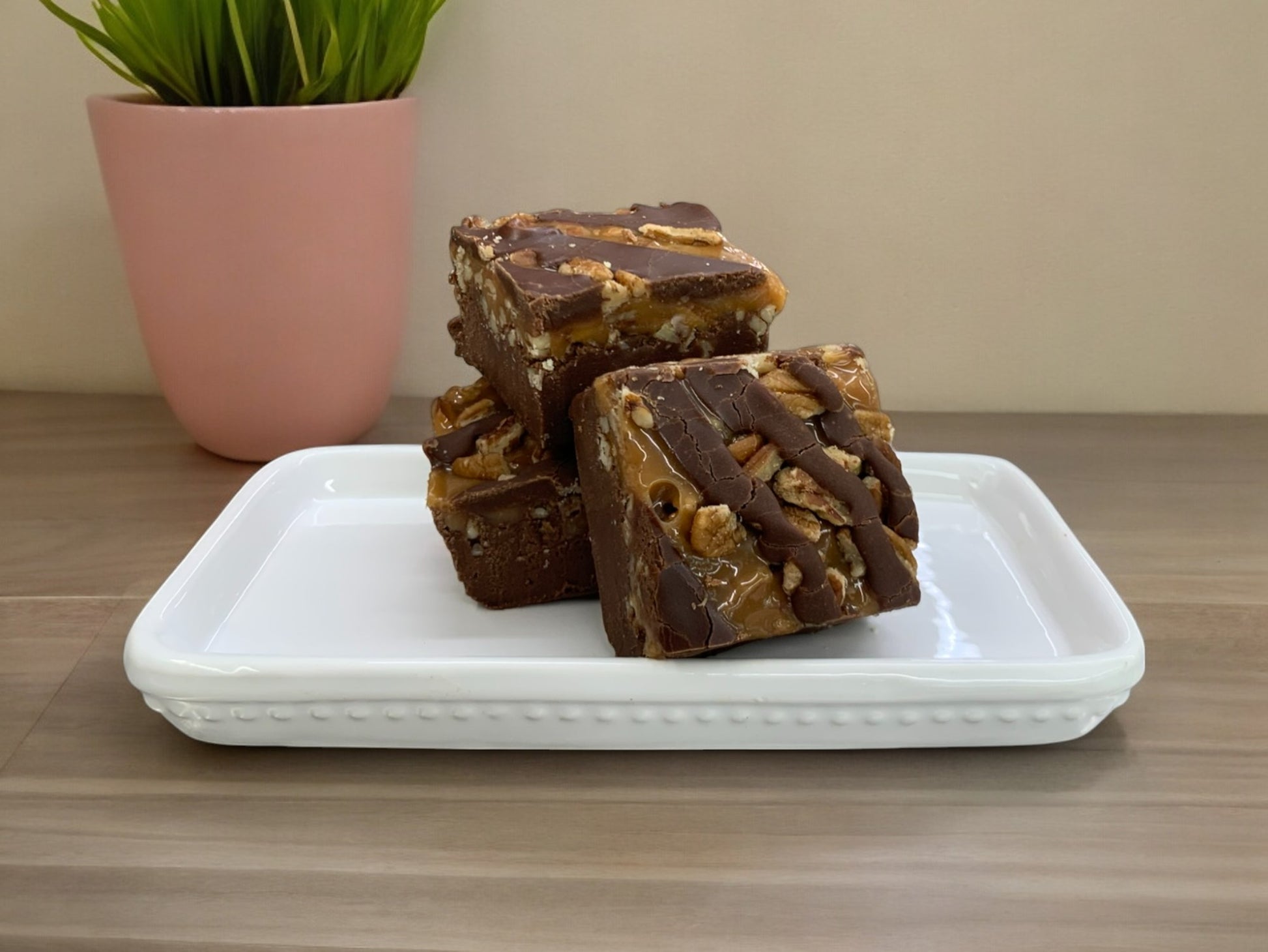 - Rich, creamy fudge blending chocolate, caramel, and pecans for a decadent bite.