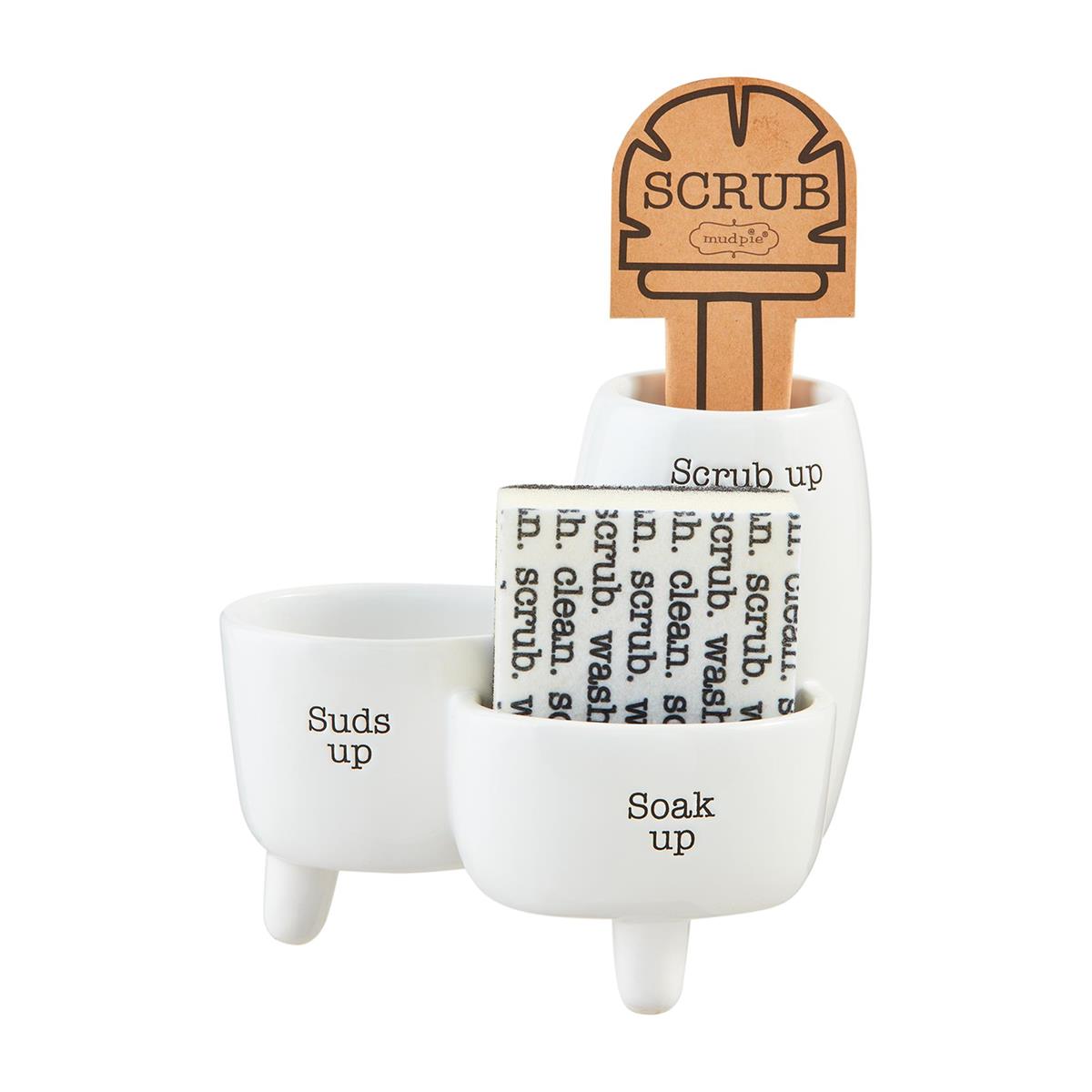 Mud Pie Circa Triple Sink Sponge Caddy Set by Mud Pie delivers stylish organization for your kitchen sink area, keeping your sponges, scrubbers, and soap neatly arranged for clutter-free cleanup.