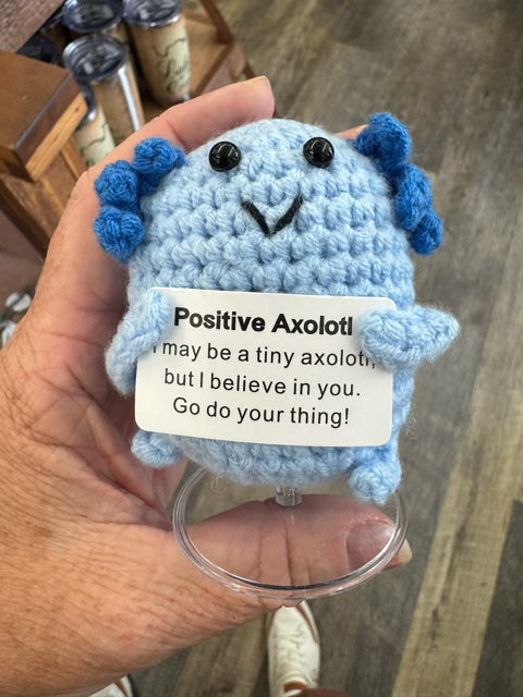 Positive Axolotl KeyChain by Ozarkland brings a daily dose of positivity for teens, perfect for attaching to backpacks or keyrings. MAY BE A TINY AZOLOTI BUT I BELIEVE IN YOU! ([explorebranson.com](https://www.explorebranson.com/retail-shops/ozarkland-branson/?utm_source=chatgpt.com), [ozarklandgeneralstore.com](https://ozarklandgeneralstore.com/?srsltid=AfmBOorotFwjLTC0f6-SRmN7L_UxNsH82jbVQQvKott29SQTmWDE9rzU&utm_source=chatgpt.com))