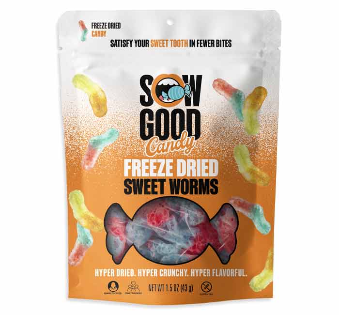 Sow Good Freeze Dried Goods Candy - Sweet Worms by Ozarkland delivers a guilt-free, light and crispy candy experience for candy lovers of all ages, perfect for on-the-go snacking anytime, anywhere. ([kellisgifts.com](https://www.kellisgifts.com/sow-good-sweet-worms-freeze-dried-candy/?utm_source=chatgpt.com))