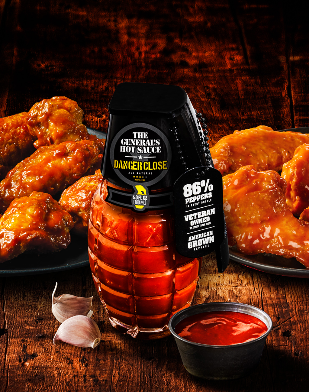 - All natural & American grown: Made with American-grown peppers and natural ingredients, reflecting veteran-owned roots. ([preservationco.com](https://preservationco.com/products/the-generals-hot-sauce?utm_source=chatgpt.com), [creedeoliveoil.com](https://www.creedeoliveoil.com/collections/hot-sauces/products/danger-close-the-generals-hot-sauce-1?utm_source=chatgpt.com))